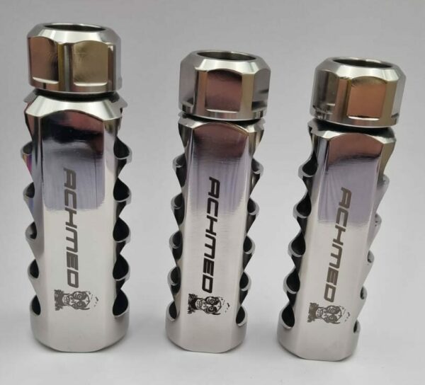 Achmed 4 Muzzle Brake – Large: Also has the same principal design as its formerly design predecessor. Achmed 4 Muzzle Brake – Large has the same number of ports. Increased negative port volume. Same great outside diameter of 35mm. Large is the same length. Furthermore, perfect center mass balance that reduces rifle in balance and reduce bullet vibrations. ±19.8% reduction in crown carbon build up. 360-540 degrees tuner capabilities (See instructions) For any rifle from .270-.460 Styer caliber.